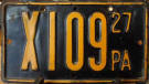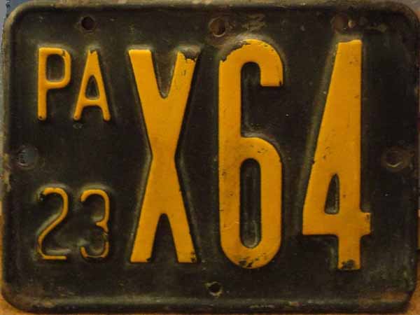 Observed serial range: none observed According to records, X1 - X500 were ordered for this year Plates measure: unknown, none observed Manufactured in Pennsylvania prisons Colors: brown on cream |