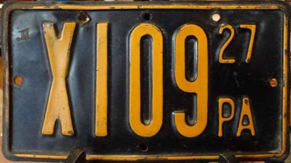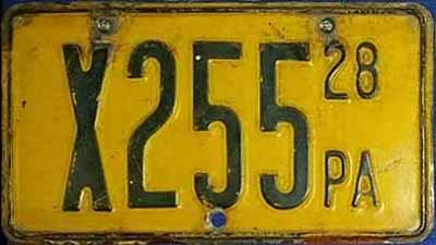 Observed serial range: none observed Plates measure: unknown, none observed Manufactured in Pennsylvania prisons Colors: black on gold |
