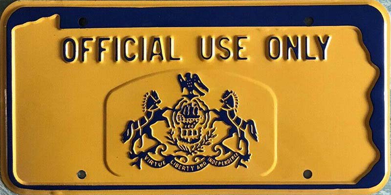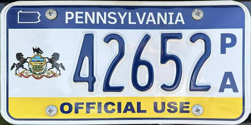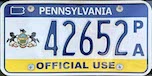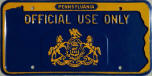 It appears that Official plates were first introduced as early as 1924. The 1924 and '25 plates used the format described below. The remainder of the early plates thru 1935 followed the format shown in the 1926 and '27 plates shown below. In 1936 the format changed slightly and the plate legend became Official Use Only. In 1938 the format changed again with the appearance of the map outline and a return to Official as the legend. At least from 1940 to 1956 no plates had the term Official on them but there was a reserved block of numbers from the standard passenger series. In 1957 the legend again became Official Use Only. Plates were undated and had Pennsylvania within the top border. This series was used until 1965 or 66.