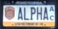 Here is a "first-of" image of an Alpha Fire Company No. 1 Inc. plate, thanks to Brandon Sowers and Adam Gartska. This particular example is a personalized version of the plate type. Although a good picture cannot always be obtained, this site welcomes any image, especially when it's the first such image for the plate type!