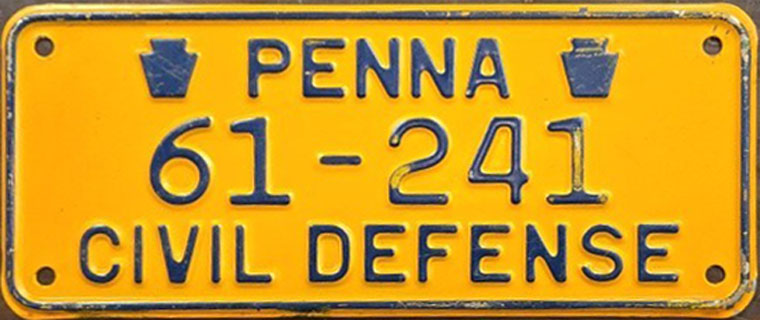Last up this week is a Civil Defense plate for Venango County. The number "61" indicates that it is for Venango County and this county is a "first-of" for this site. Thank you to eBay user "License Plate Deals" for the image.