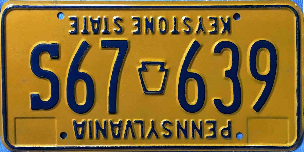 Early plates had '71 etched into center of sticker well and had gold backs. Later plates dropped the etching and kept gold backs. Late plates had unpainted backs.